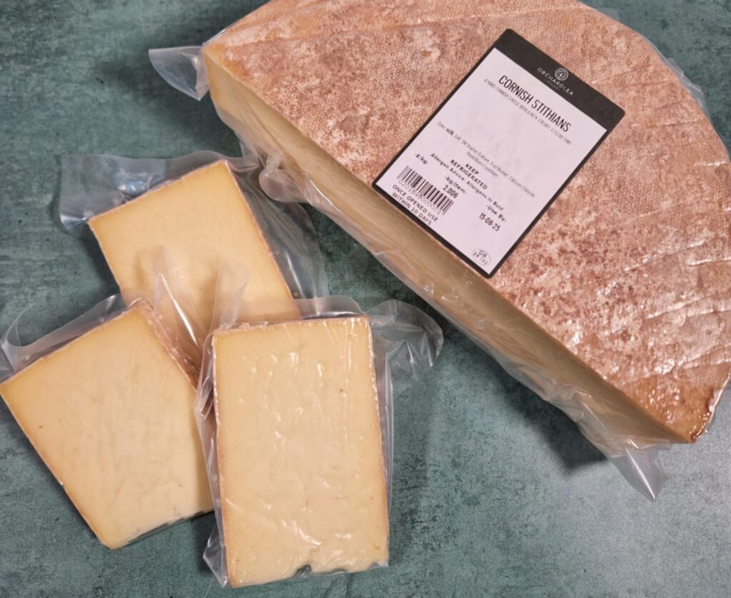 Lynher Dairy have been producing their utterly delicious Cornish Yarg and Garlic Yarg since the 1980’s. The Yarg is wrapped in nettles whilst the Garlic Yarg is wrapped in wild garlic leaves. In both versions the leaves impart a subtle flavour into the cheese. This Stithians version, also known as Naked Yarg, is this same cheese but without any leaves. It really lets the simple, balanced flavour from the rich Cornish milk shine through.